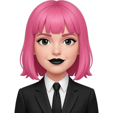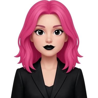 Girl pink hair and black eyes and black lips and black suit emoji