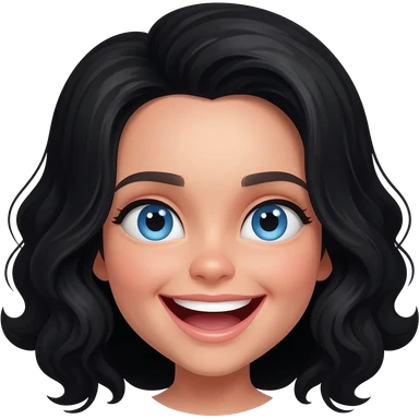 Girl with black wavy hair and she is white, she laughs emoji