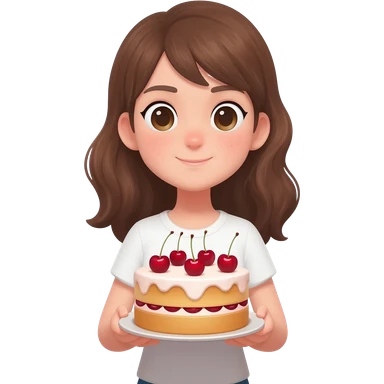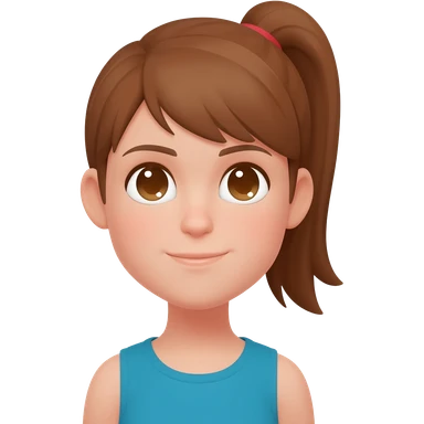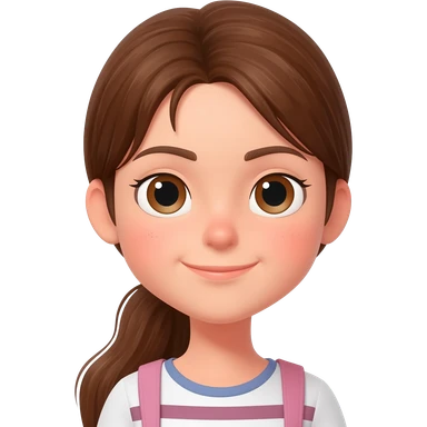 girl with dark blond hair, straight mid-length hair, with light blue eyes, wearing a pastel pink sweatshirt emoji