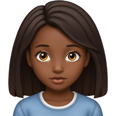 Girl with very long straight dark hair with brows done emoji