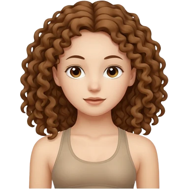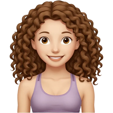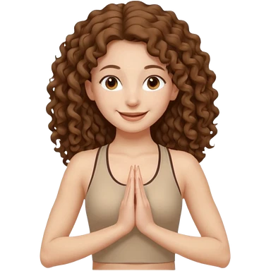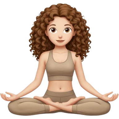 girl long brown hair curly yoga wearing beige emoji