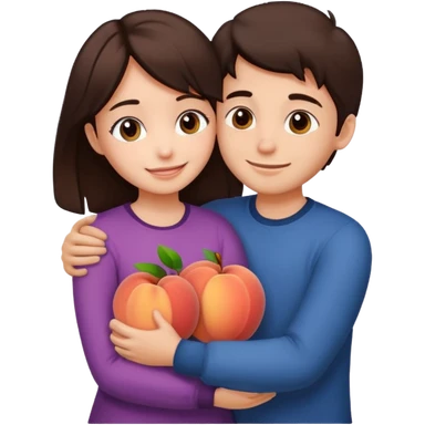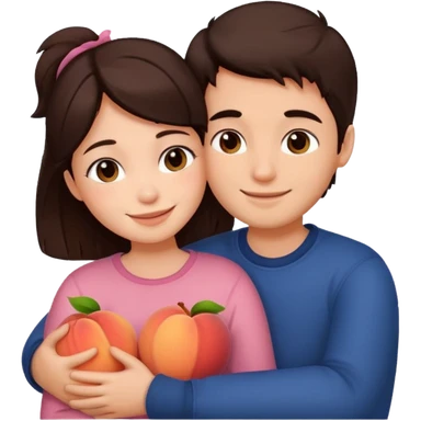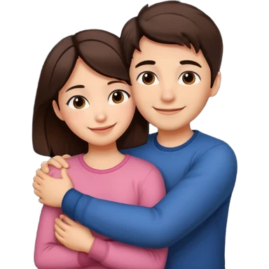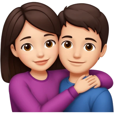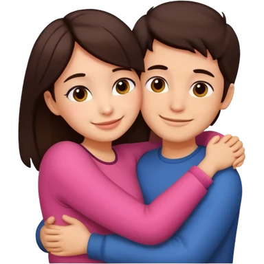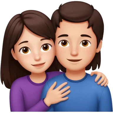 Girl and boy couple Both peach skin and darkish brown hair, give girl freckles HUGgING EMOJI emoji