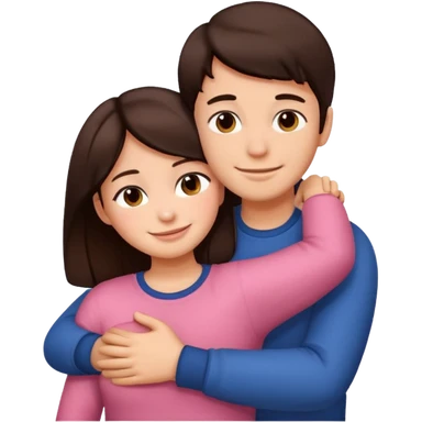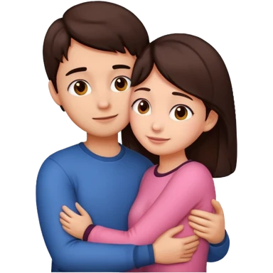 Girl and boy couple Both peach skin and darkish brown hair hugging emoji emoji