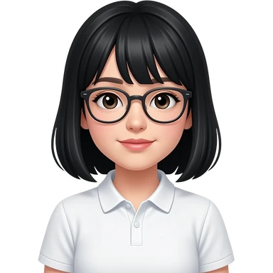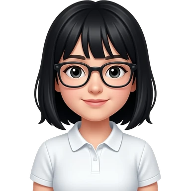 Girl with black hair curtain bangs and glasses and white polo shirt emoji