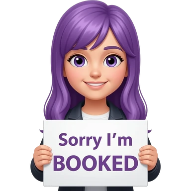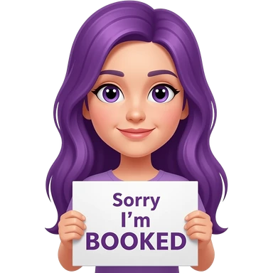 girl with long purple hair with a Sorry I'm BOOKED sign emoji