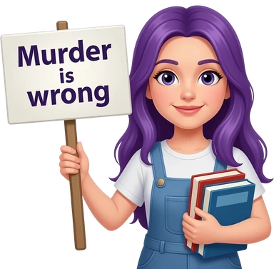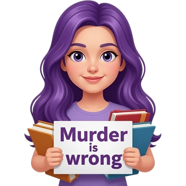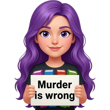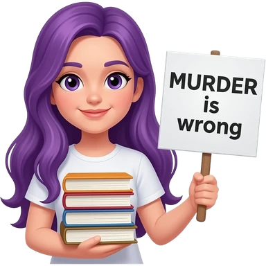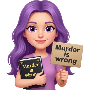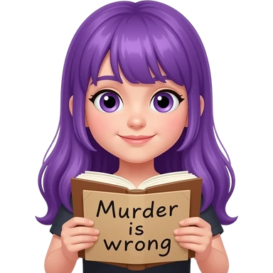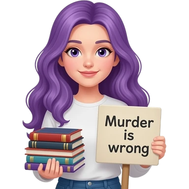 girl with long purple hair with a BOOKS, because MURDER is wrong sign emoji