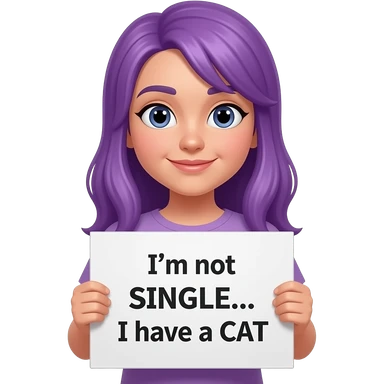girl with long purple hair with a I'm not SINGLE... I have CATS sign emoji