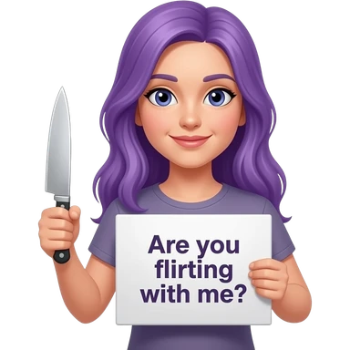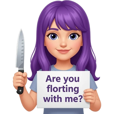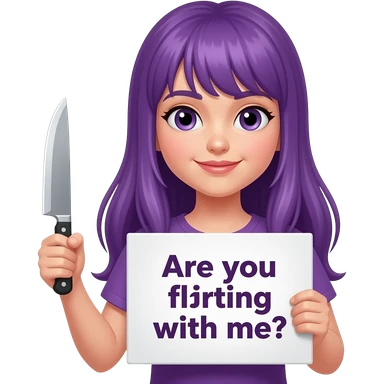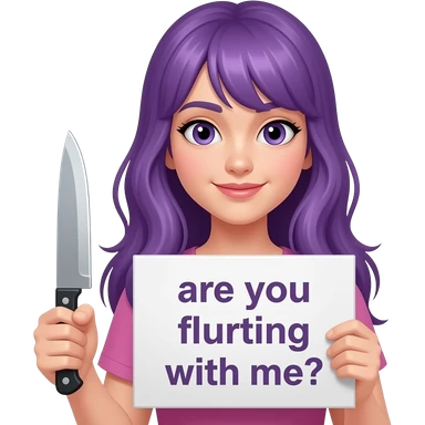 girl with long purple hair with a A KNIFE - Are you flirting with me? sign emoji