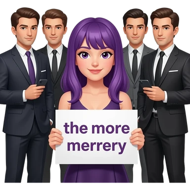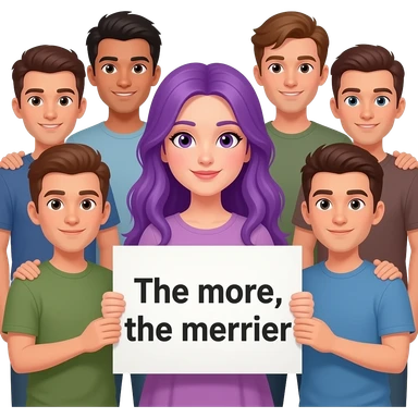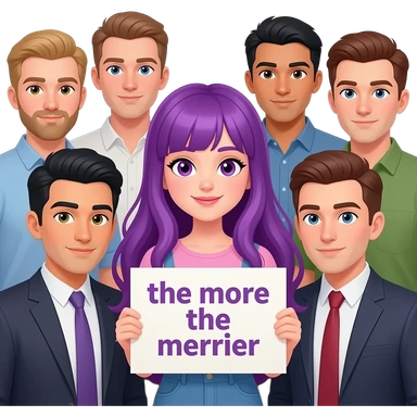 girl with long purple hair with a REVERSE HAREM because the more THE MERRIER sign emoji