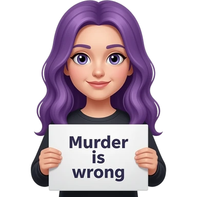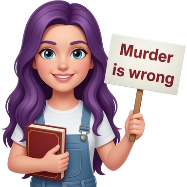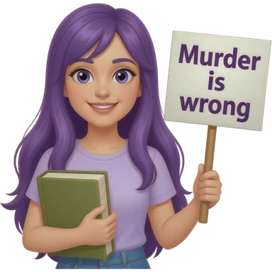girl with long purple hair with a BOOKS because MURDER is wrong sign emoji