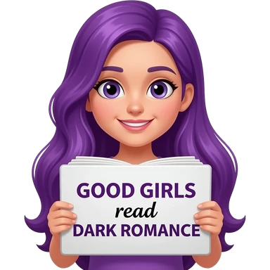 girl with long purple hair with a GOOD GIRLS read DARK ROMANCE sign emoji