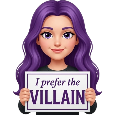 girl with long purple hair with a I prefer the VILLAIN sign emoji