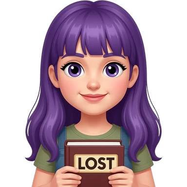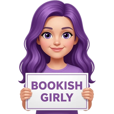 girl with long purple hair with a BOOKISH GIRLY sign emoji