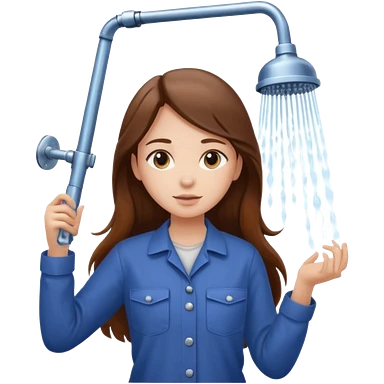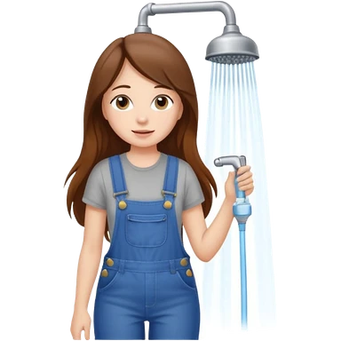 beautiful girl with long brown hair constructing new shower in bedroom emoji