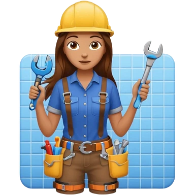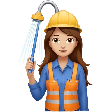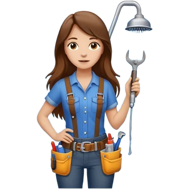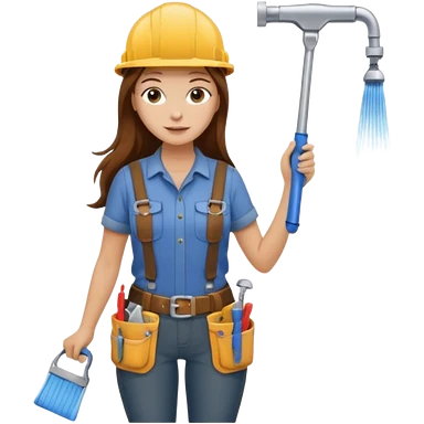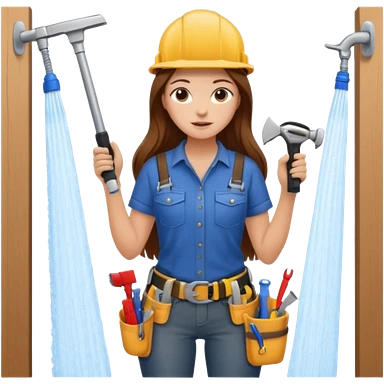 beautiful girl with long brown hair constructing new shower in bathroom emoji