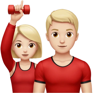 Girl and boy in red gym clothes who are thinking about something emoji