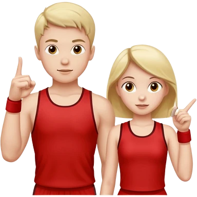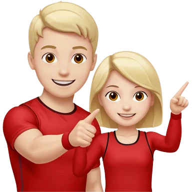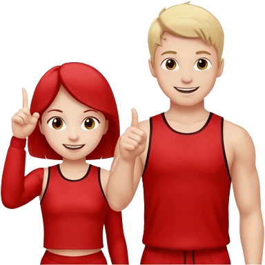 Girl and boy in red gym clothes who points out emoji