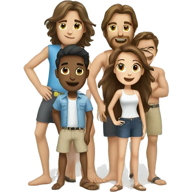 make an emoji where you are standing three brunette guys and one girl with long brunette hair, and around the sea, palm trees emoji