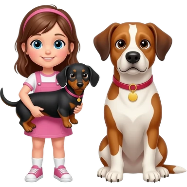 Girl and two dogs emoji | AI Emoji Generator