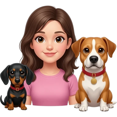 Girl and two dogs dachshund and cattle dog emoji