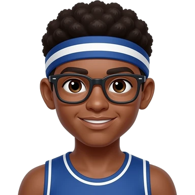 dark skin athele boy with head band wear glasses emoji