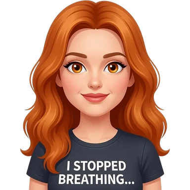 sexy girl with overlong ginger hair and ginger eyes a top with I STOPPED BREATHING... written on it emoji