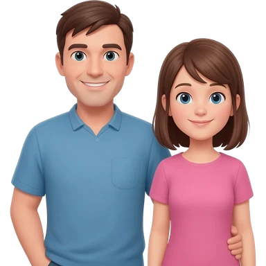 girl with curly brown hair and green eyes hugging taller handsome bald blue-eyed man emoji