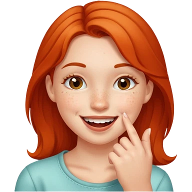 a girl smiling and bitting her finger emoji