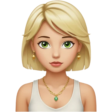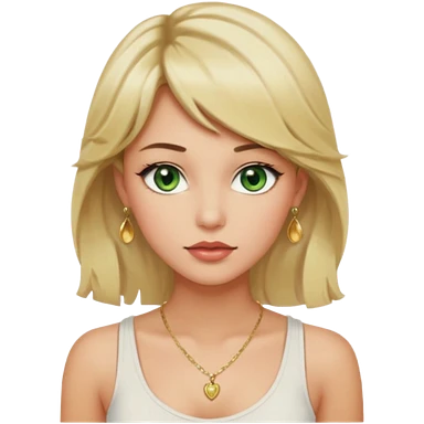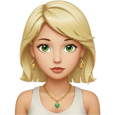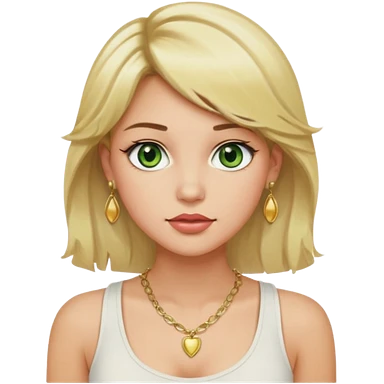 girl blonde and slightly red on the roots with blue eyes, light skin, pink blush with small arrows in a shirt and a black vest with small white stripes emoji | AI Emoji Generator