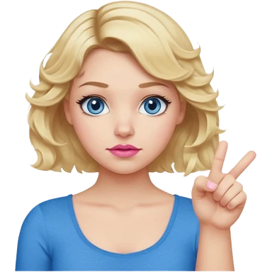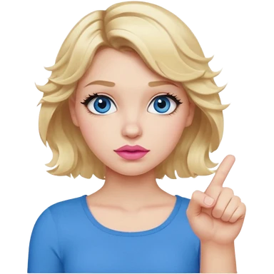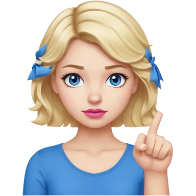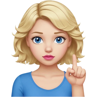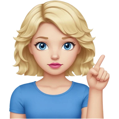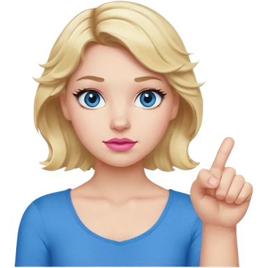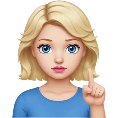 Girl Blonde short wavy hair, blue eyes, cute blue top, long lashes, pink lips, thumbs down emoji