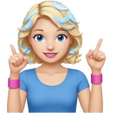 Girl Blonde short wavy hair, blue eyes, cute blue top, long lashes, pink lips, smiling, fist bump emoji | AI Emoji Generator