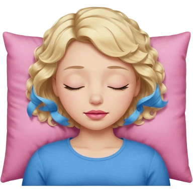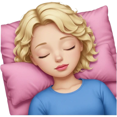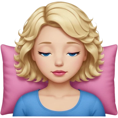 Girl Blonde short wavy hair, blue eyes, cute blue top, long lashes, pink lips, sleeping eyes closed, zzzz emoji | AI Emoji Generator