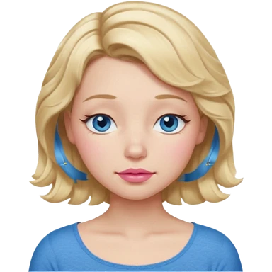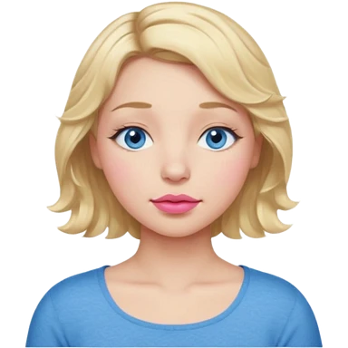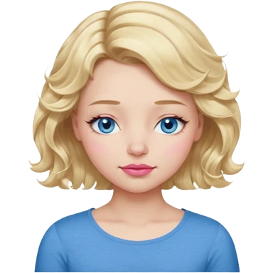 Girl Blonde short wavy hair, blue eyes, cute blue top, long lashes, pink lips, emoji
