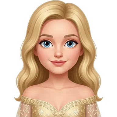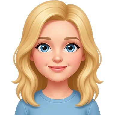 Girl with green eyes, blonde hair, rounder face, and hair parts in the middle, very nice shaped eye brows emoji