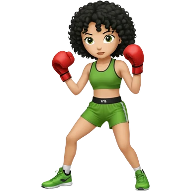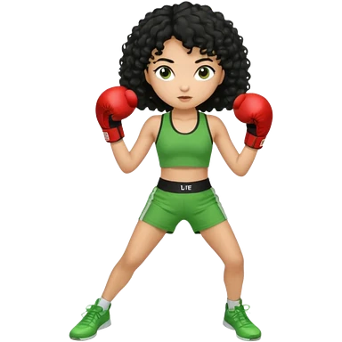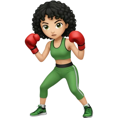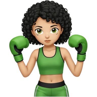 a girl with black curly hair and olive skin in a green workout outfit, boxing emoji