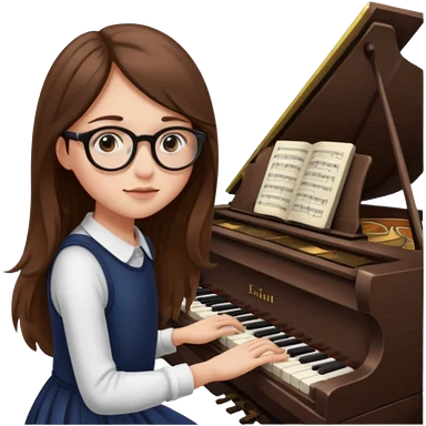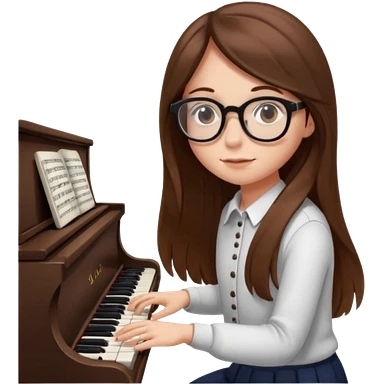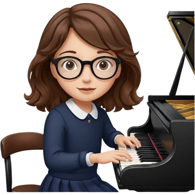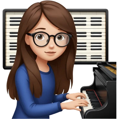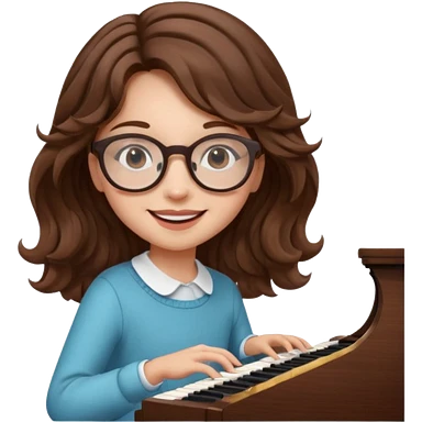girl brown hair wavy. round glasses eye. playing piano emoji