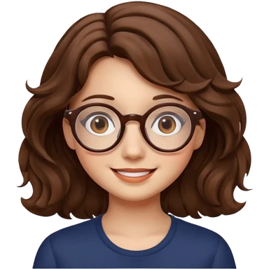 a girl brown hair brown eyes white skin wavy hair round glasses emoji