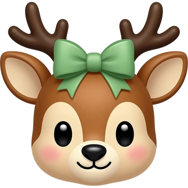 cute dear face with Sage green bow on the head emoji
