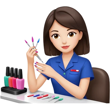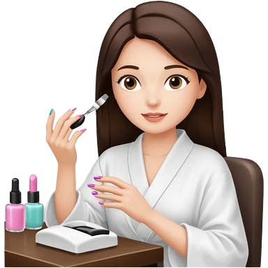 Brunette Girl getting a manicure at nail salon wind club emoji