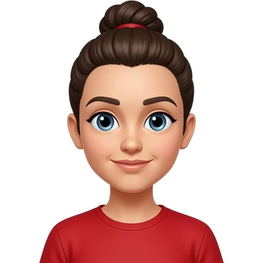 girl with unique face and hair bun wear red plain shirt emoji