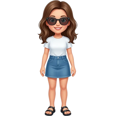 girl wearing t-shirt. skirt, sandals and sunglasses emoji