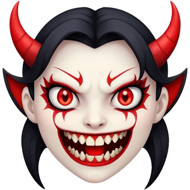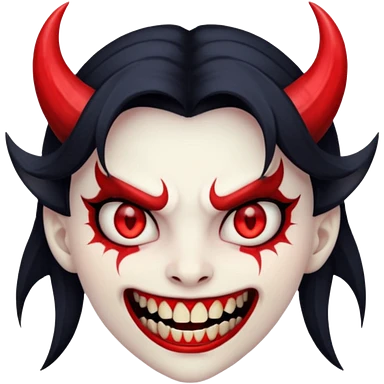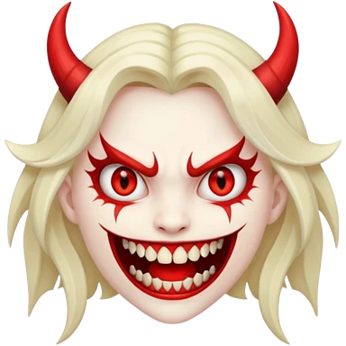 Girl, long blond hair, blue eyes, eggplant as lipstick emoji