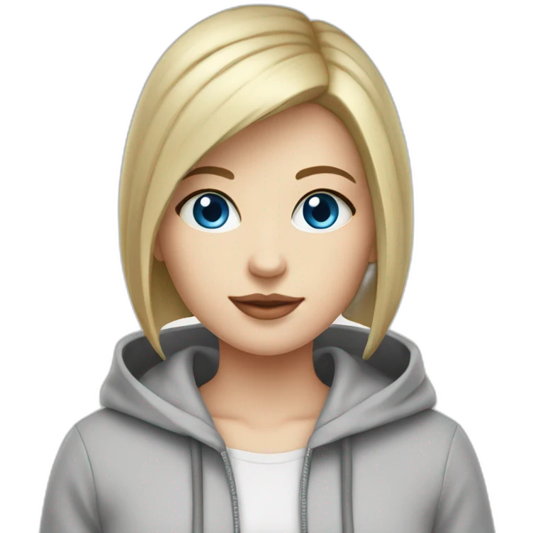 girl codes on computer,beautiful girl with short hair with computer, programming,blue eyes,white skin, makeup, hoodie emoji | AI Emoji Generator