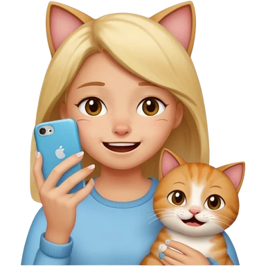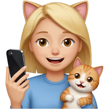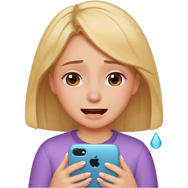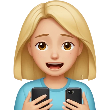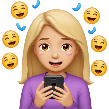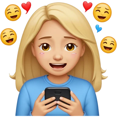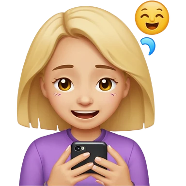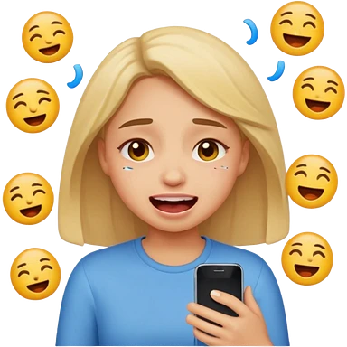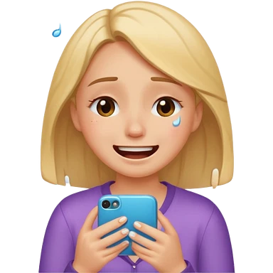 Girl crying laughing at a funny video on her phone. More emoji style. Less realistic emoji