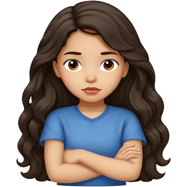Hispanic girl with long dark brown wavy hair crossing her arms and pouting emoji