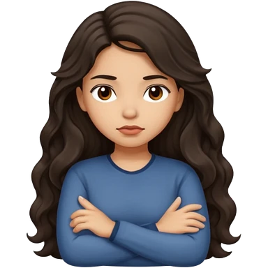 girl dark long wavy hair crossing her arms with slight pout emoji | AI Emoji Generator