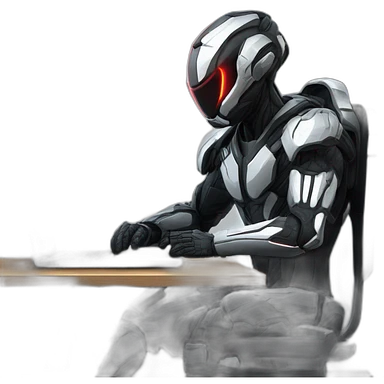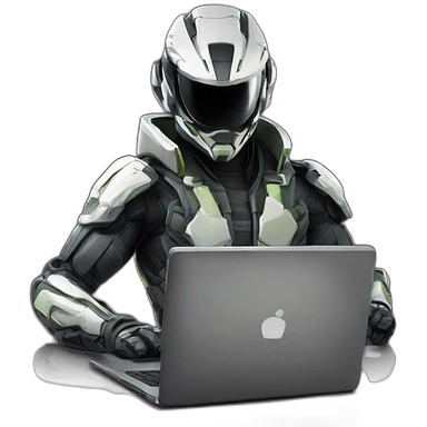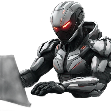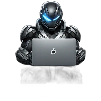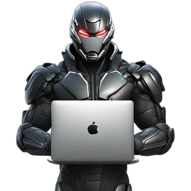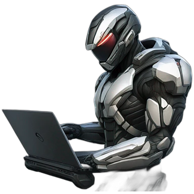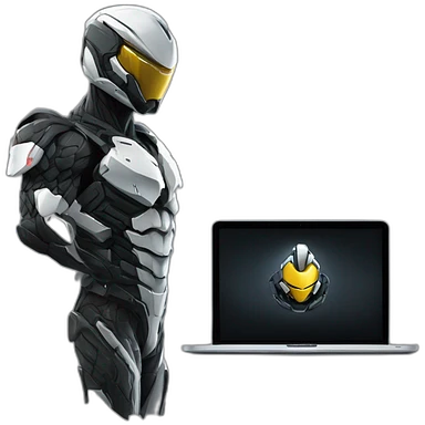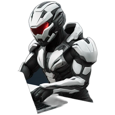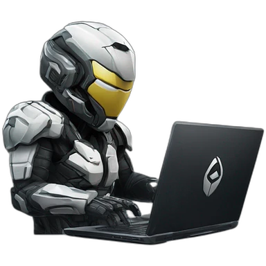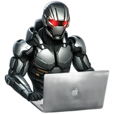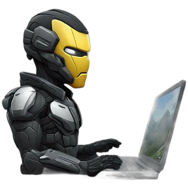 developer behind his laptop with this style : Crytek Crysis Video game with nanosuit hacker themed character emoji