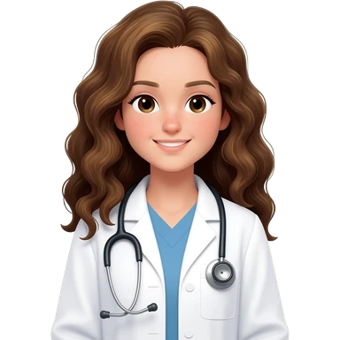 doctor, light brown hair, girl, white skin, wavy hair, freckles, green eyes, pink lips emoji