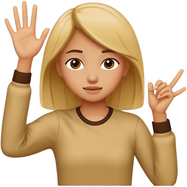 a girl with brown wavy hair and freckles and bright hazel eyes doing the dab emoji