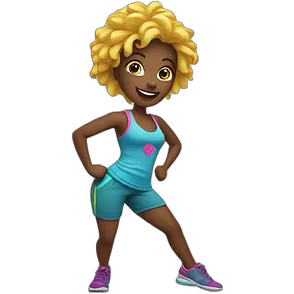 Blond girl smiling in with Zumba logo on white t-shirt emoji